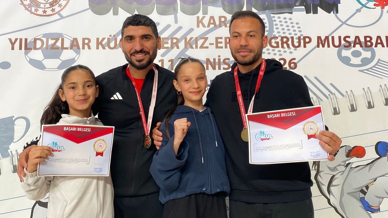 Hatay Gençlik ve Spor İl Müdürlüğü tarafından organize edilen turnuvaya Gaziantep'ten katılan Kıbrıs Ortaokulu ve Türkan Mehmet Akcan Ortaokulu 7'inci sınıf öğrencileri Nesibe Nur Şimşek ile Zeynep Yavuz, kendi kategorilerinde şampiyon olarak altın madalya kazandı.