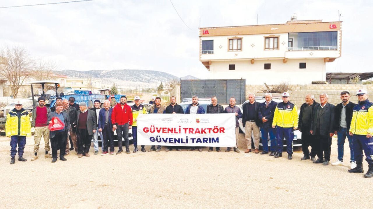 Gaziantep İl Jandarma Komutanlığı Trafik Jandarması ekipleri, traktörlerin karayollarında seyri sırasında görünürlüğü artırmak ve güvenli trafik akışını sağlamak amacıyla çalışmalarına devam ediyor. Gaziantep Valiliği, Büyükşehir Belediyesi ve İl Jandarma Komutanlığı iş birliğinde yürütülen "Reflektör Tak, Görünür Ol" proje kapsamında Araban ilçesinde 85 traktör sürücüsüne "sarı ikaz lambası kullanma, traktör römorklarında bulunması zorunlu olan reflektör ve rops demiri kullanımının trafik kazalarındaki önemi" hakkında trafik bilgilendirme semineri verildi. Bilgilendirme faaliyeti sonrası reflektör bulunmayan traktör römorklarına 170 adet reflektör dağıtıldı.