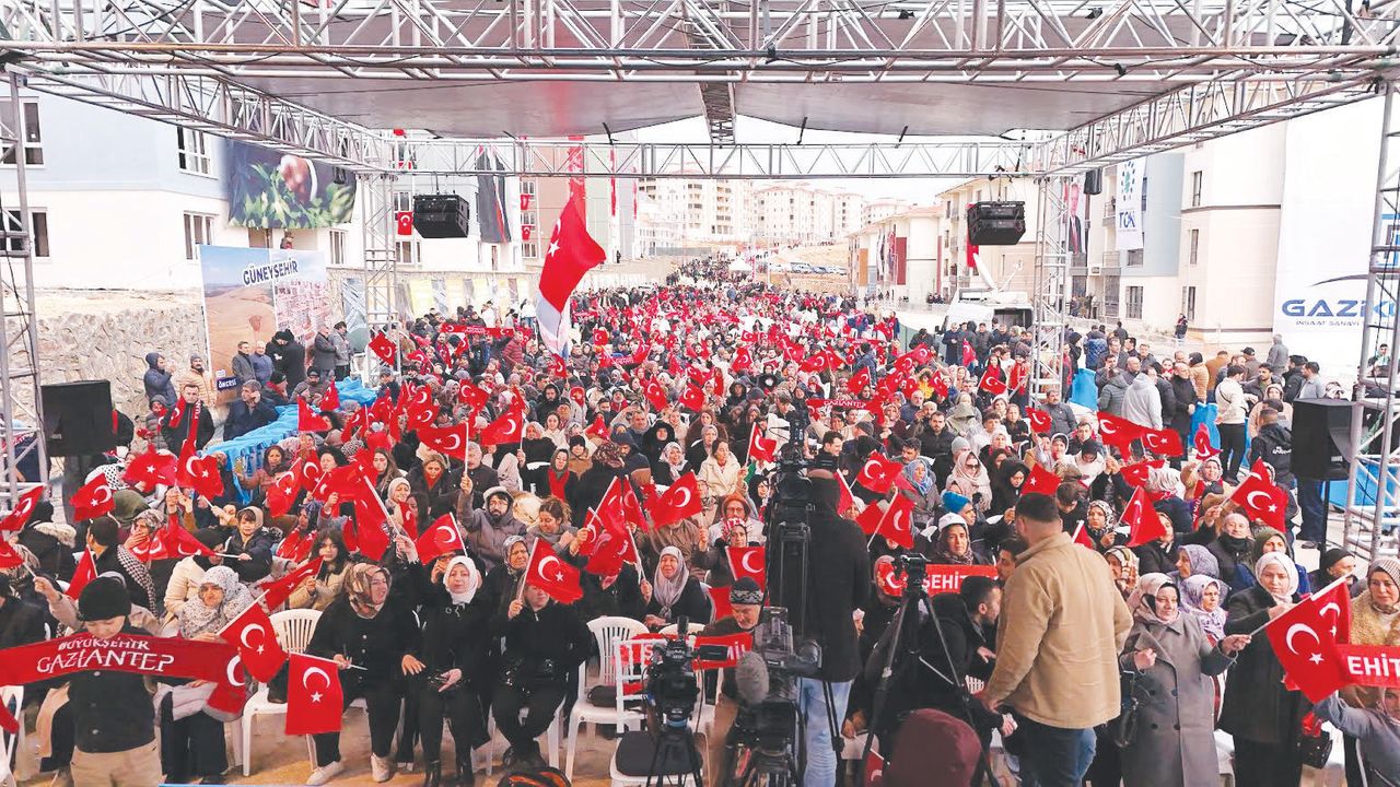 “Gaziantep Modeli birlikten rahmet var, birlikten kuvvet doğar modeli. Burada bir medeniyet, felsefe var. Yuva sıcaklıktır, güveneceğin liman, huzur ve sükunettir. Valimizle sahada vatandaşlarla konuştuğumuzda konut, kira sorununu dile getirdiler. Şikayet etmiyor çare buluyoruz. İki yıl önce burası dağdı, kimse inanmadı. 2 yıl içerisinde bir şehir ortaya çıktı. Formülümüz tek tip değil. 3 tip var. Esnaf birliklerine kooperatif kurdurduk. Hepsi kendi evini yapıyor. İkincisi şu anda 300 bin kişinin çalıştığı organizede yönetmelik değiştirdik, artık taşımayacağız. İşçimiz organizeye gidene kadar yoruluyor. 2 milyon metrekareyi ayırdık, 15 bin konutta orada yapılacak. Kardeşlik modelimiz Türkiye modeli olana kadar, Gazze’de ki çocuklar öldürülmeyene kadar, Gazinin çocuklarının verdiği mücadeleyle hak için adalet için çalıştıysak sonuna kadar çalışacağız.”