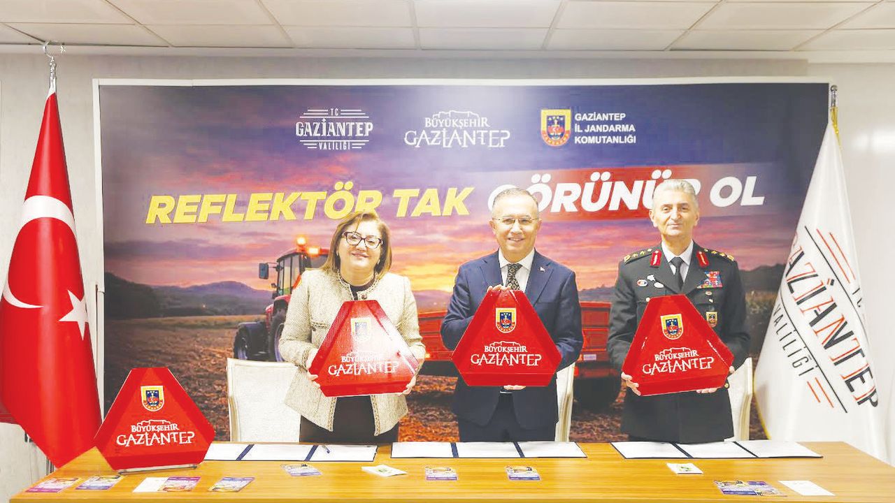 Gaziantep Valisi Kemal Çeber, ÇKS’ye kayıtlı ve traktörü olan çiftçilere reflektörlerin dağıtılacağını, can ve mal kaybı yaşanmaması için bunların kullanılmasının zorunlu olduğunu ifade ederek, “Bazen çok basit tedbirler can güvenliğinizi muhafaza etmenize yeterli oluyor. Gaziantep’te Çiftçi Kayıt Sistemi’ne kayıtlı yaklaşık 46 bin 500 çiftçimiz var ve bunların yüzde sekseninin traktörü bulunuyor. Yani yaklaşık 38 bin traktör var. Özellikle tarımsal faaliyetlerin yoğun olduğu dönemlerde ve hasat zamanında traktörleri trafikte sıkça görüyoruz. Ülke genelindeki tespitler de traktör kazalarında bu durumu ortaya koyuyor. Biz her sorunumuzu, her derdimizi ve her sevincimizi paylaştığımız gibi bunu da Büyükşehir Belediyemizle paylaştık ve ‘ne yapabiliriz’ dedik. Her konuda olduğu gibi Sayın Fatma Şahin yine bizimle birlikte bu işe el attı. Bugün de bu protokolü imzalıyoruz. Protokol sonucunda inşallah çiftçi kardeşlerimize bu reflektörler dağıtılacak. Biz de kendilerinden reflektörleri mutlaka hemen kullanmaya başlamalarını ve traktörlerine takmalarını rica ediyoruz” dedi.