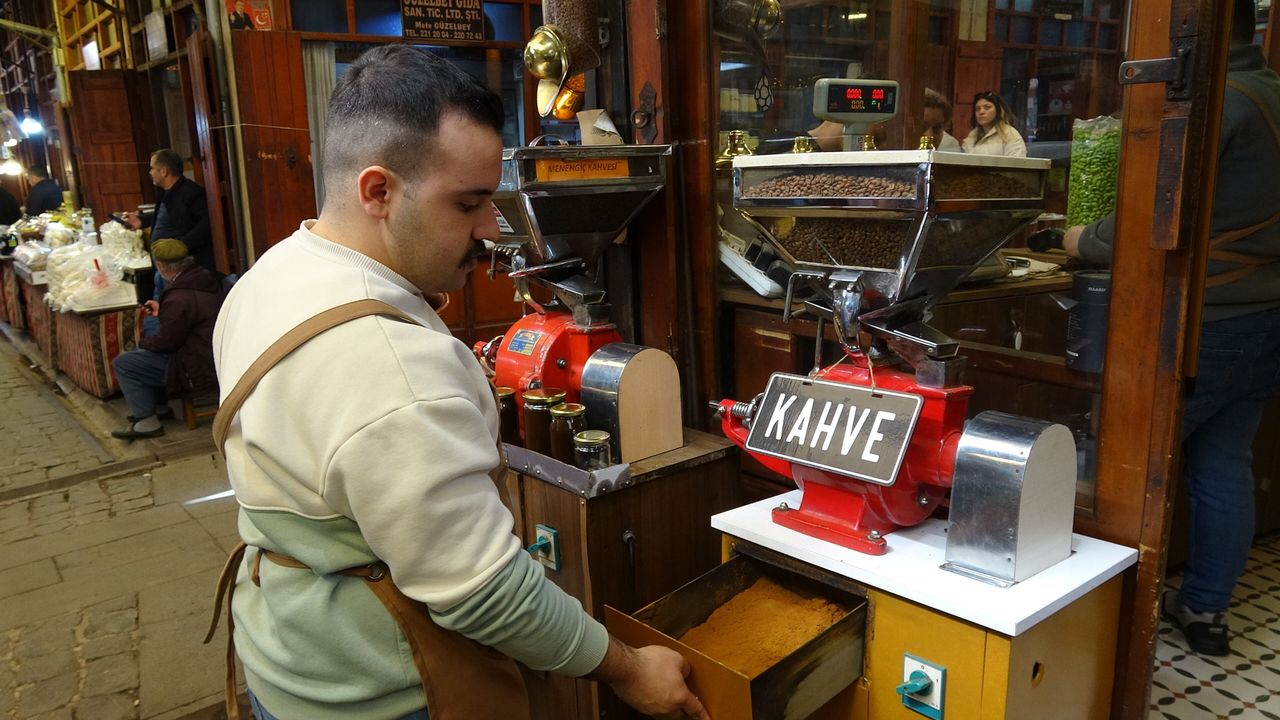 Tarihi Bakırcılar Çarşısı'nda kahve çekimi ve satışı yapan Berat Aydın, Türk ve menengiç kahvesinin kentte köklü bir kültüre sahip olduğunu belirtti.