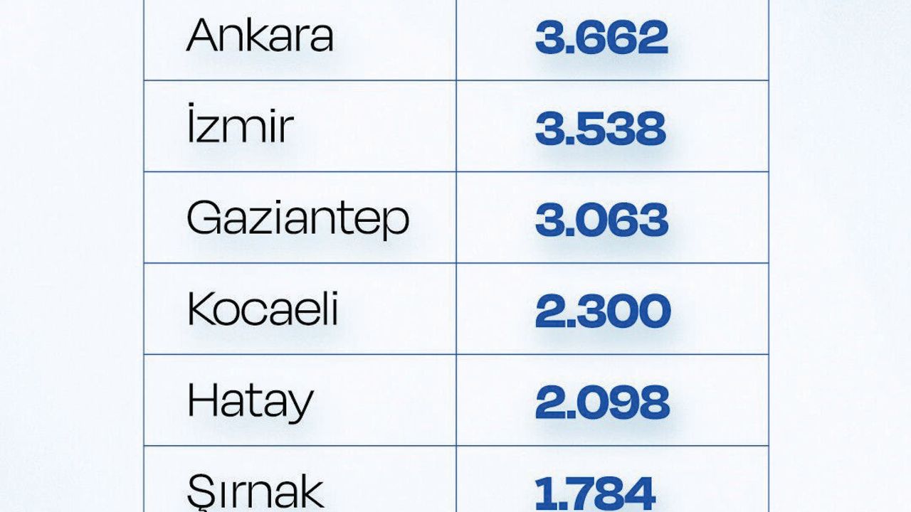 Ücretli öğretmen sayısının yüksek olduğu diğer iller ise Ankara'da 3 bin 662, İzmir'de 3 bin 538, Gaziantep'te 3 bin 63, Kocaeli'nde 2 bin 300, Hatay'da 2 bin 98, Şırnak'ta bin 784, Mardin' bin 685 ve Konya bin 443 olarak sıralandı.