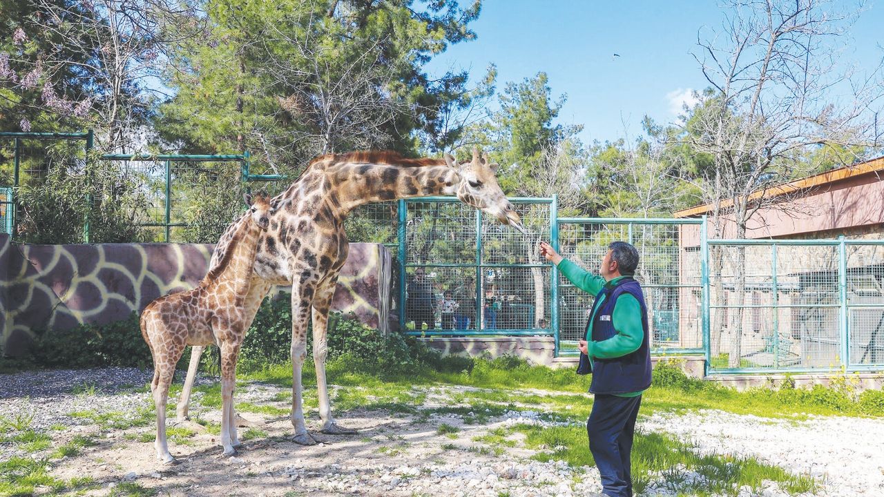 Parkın maskotu olan, 5 ay önce de ileri yaşa bağlı çoklu organ yetmezliği nedeniyle 32 yaşında ölen ve babasız doğan zürafa yavrusu, ziyaretçilerden büyük bir ilgi görüyor. Türkiye’de doğan ilk zürafa olan yavrunun ve annesinin fotoğrafını çeken ziyaretçiler, parktaki diğer hayvanlara da ilgi gösteriyor.